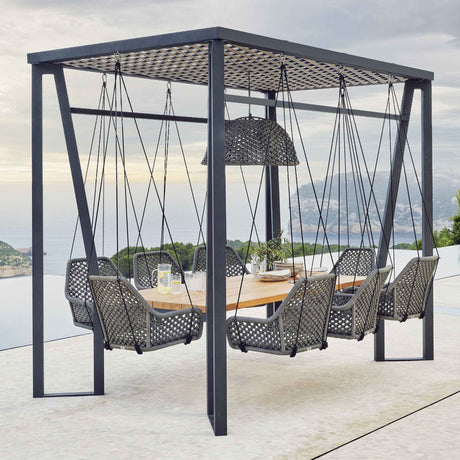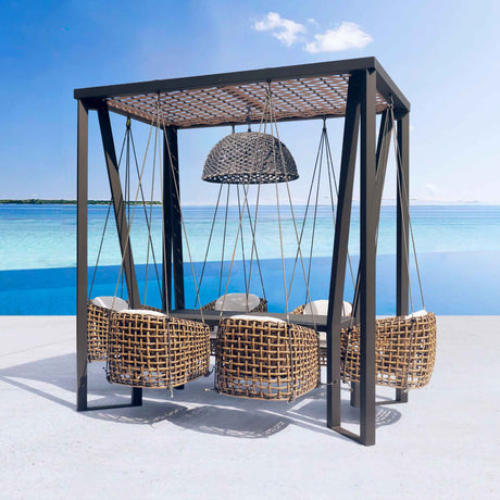 Skyline Design Horizon 8FT Pergola with Lamp, Rodona Hanging Chairs & Aluminum Table