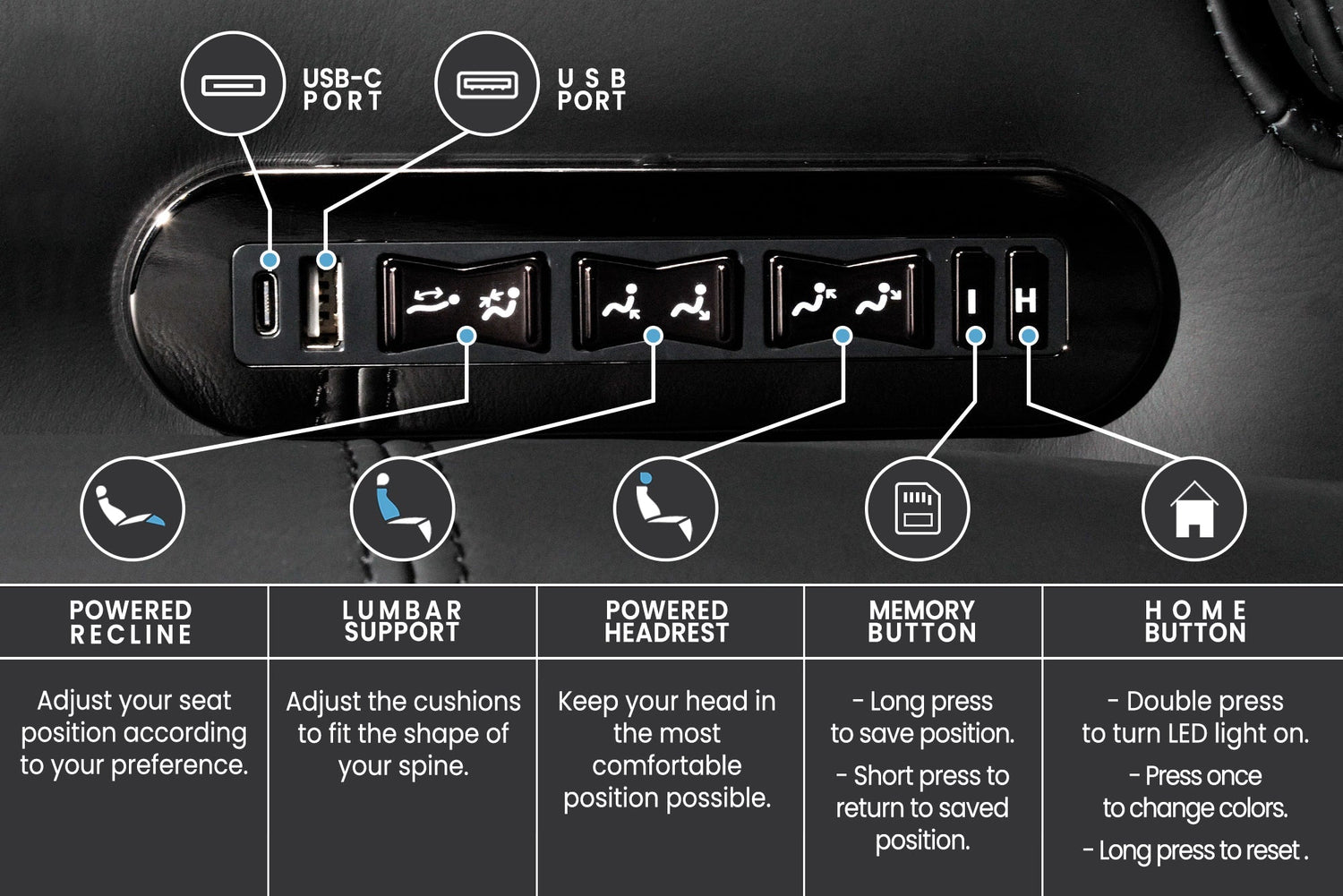 - USB-A and USB-C Charging Ports: Convenient charging with a sleek Black Chrome Controller