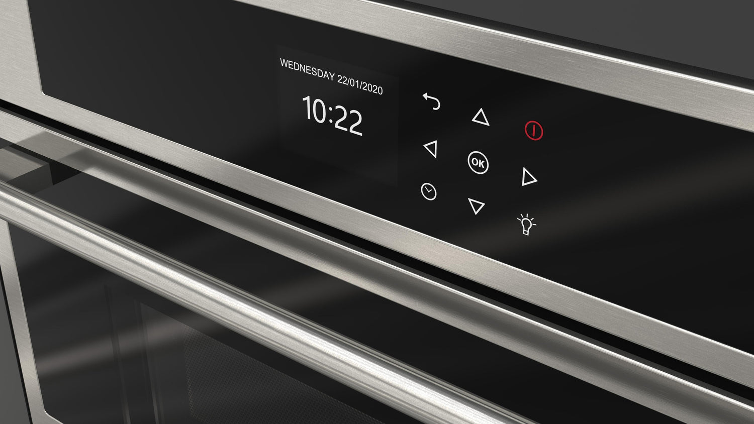 Finished in stainless steel, the oven features an intuitive TFT 3.5" display and an electronic dual full touch keyboard that makes selecting from its range of cooking functions simple and precise. The appliance supports microwave mode, convection roast and broil, and traditional broiling — plus pre‑programmed recipes — so you can easily handle everything from quick reheating to more involved cooking tasks.