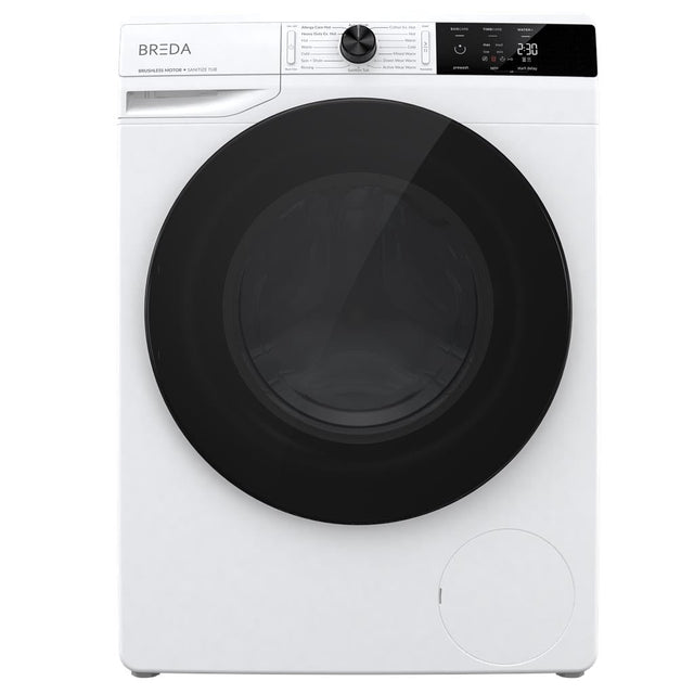 Enjoy pro-level cleaning power in a compact footprint with the BREDA 24" Front Load Washer. Designed in Europe for premium performance, this 17.6 lb capacity laundry washer combines a stainless steel drum with a brushless DC motor and built-in water heater to deliver a deep, efficient clean every time. With Energy Star certification, a powerful 1400 RPM spin speed, and intuitive digital + knob controls, it brings modern efficiency and easy operation to any laundry space — all in a sleek, space-saving design perfect for apartments, condos, and small homes.