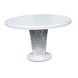 The Dynasty Round Dining Table blends modern sophistication with durable craftsmanship, creating a stunning focal point for your outdoor space. Constructed with a commercial-grade extruded aluminum frame and handwoven in premium HDPE Viro fiber, it offers weather resistance without sacrificing style. The smooth tempered glass tabletop provides an elegant and functional surface, perfect for both casual gatherings and upscale dining.