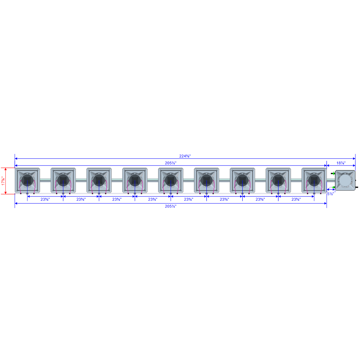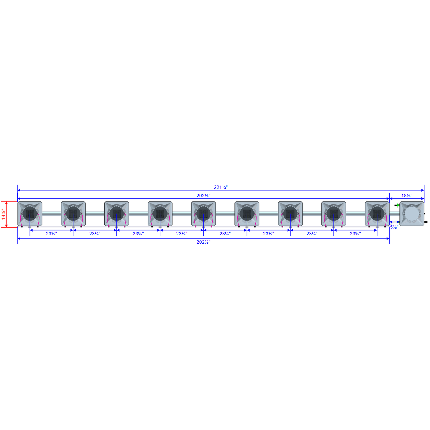 | Maximum Assembled Size | 228¾" (L) x 14⅛" (W) |