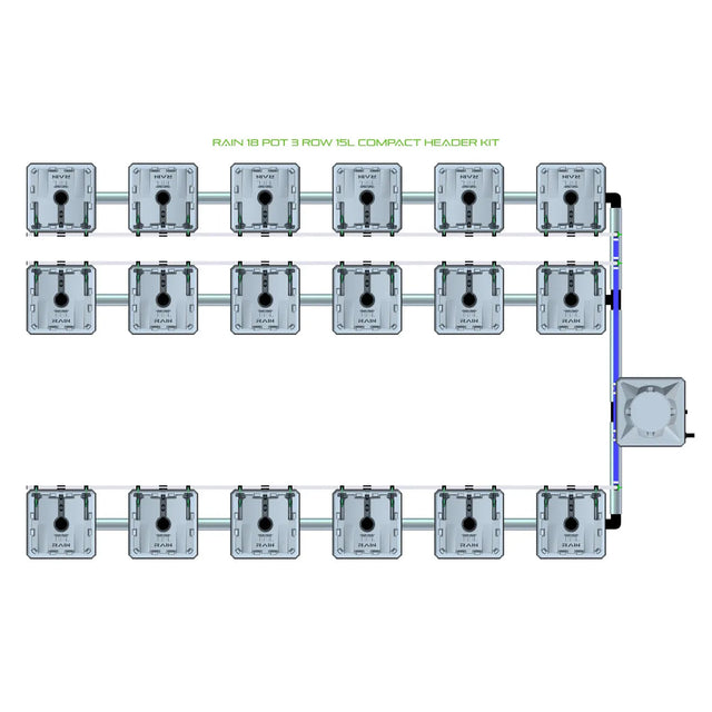 The ALIEN RAIN 18 Pot 3 Row Kit is a high-performance growing system designed for effortless automation and precision. Available in two pot sizes and two header configurations, it’s easy to assemble and customize to your setup. Its advanced design allows for an aisle between rows, ensuring complete access to all 18 plants while providing even top-feeding for optimal growth. Whether you're a beginner or an experienced grower, this kit simplifies plant care, delivering consistent and efficient results.