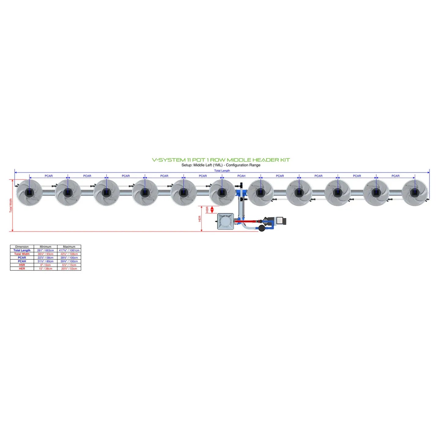 V-SYSTEM 11 Pot 1 Row Middle Header