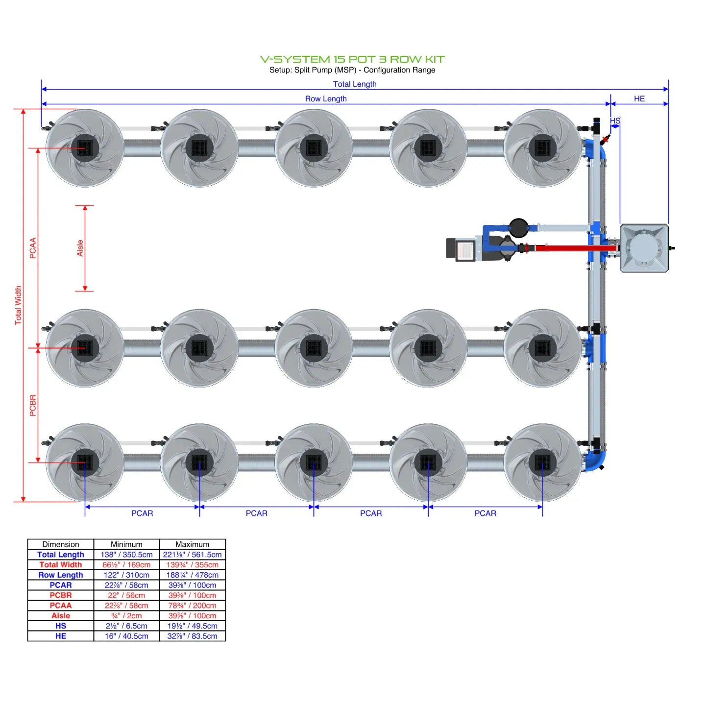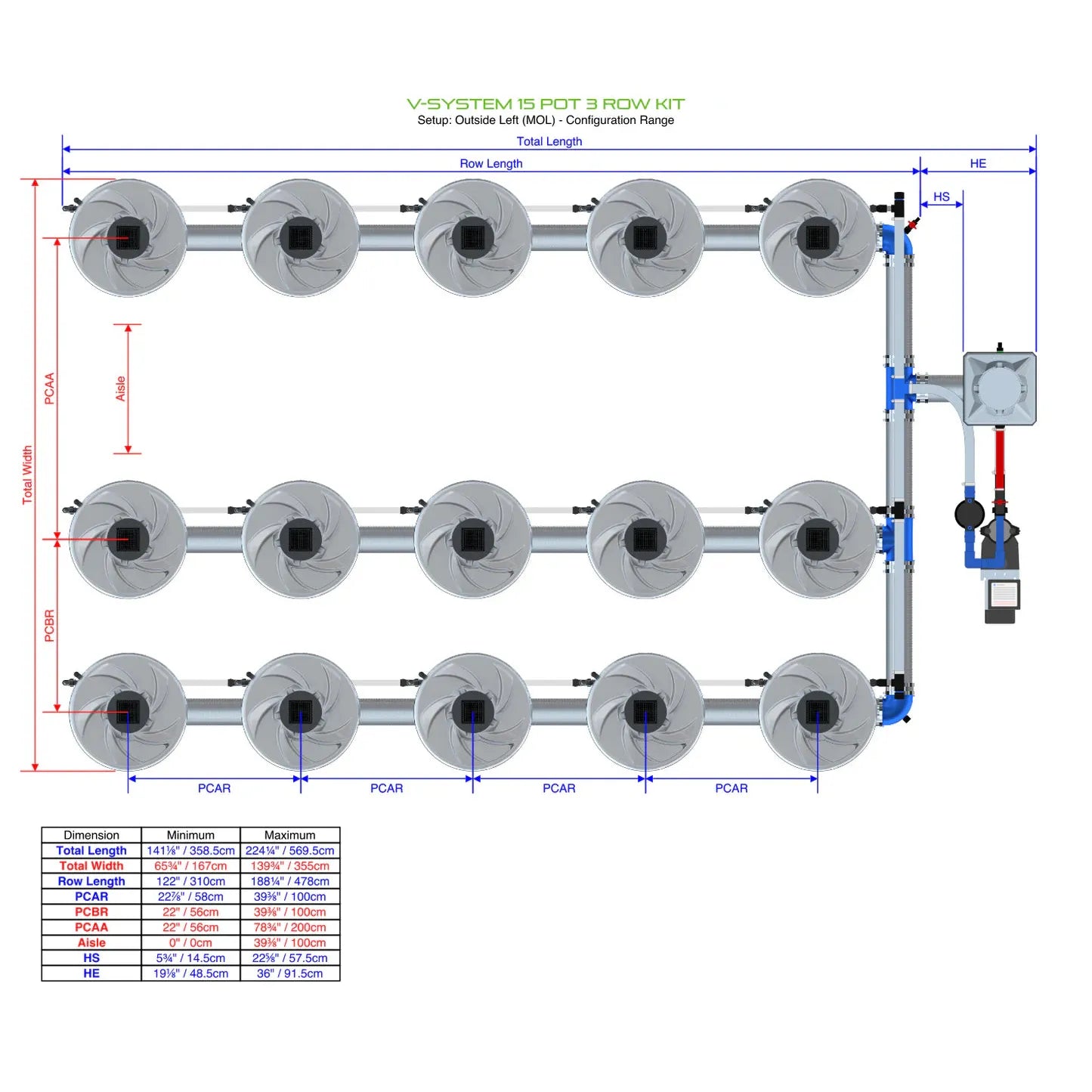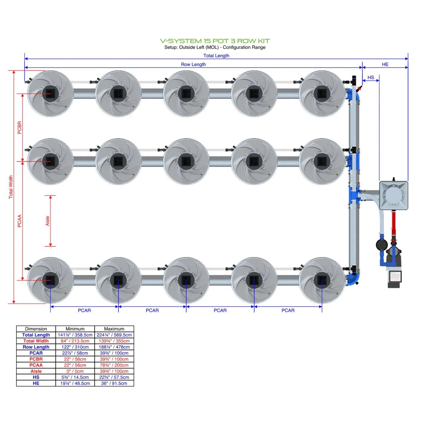 Alien Hydroponics V-SYSTEM 15 Pot 3 Row Kit