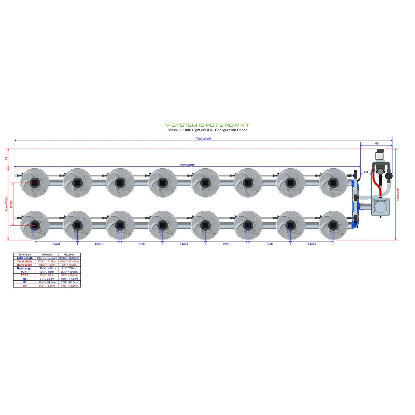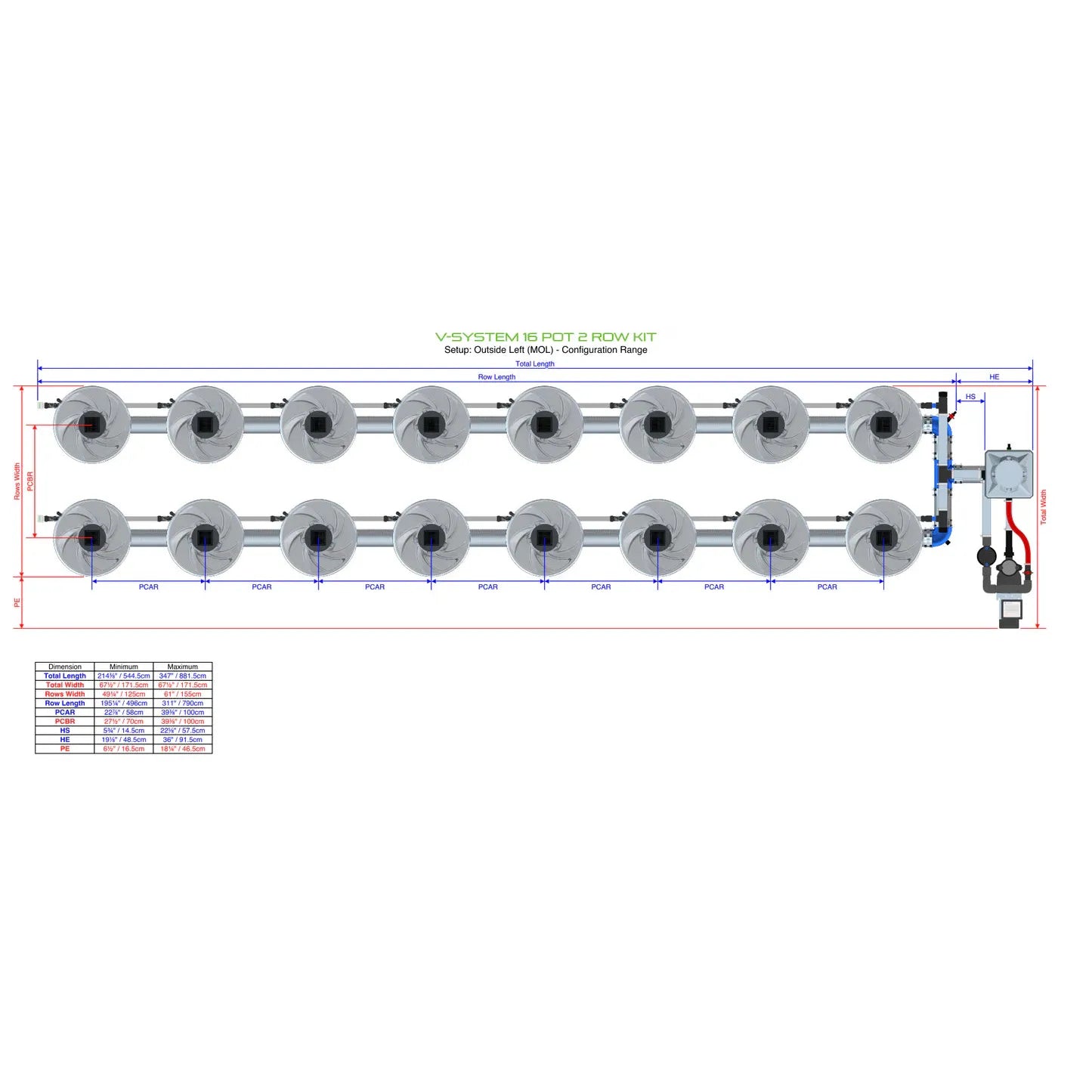 Alien Hydroponics V-SYSTEM 16 Pot 2 Row Kit