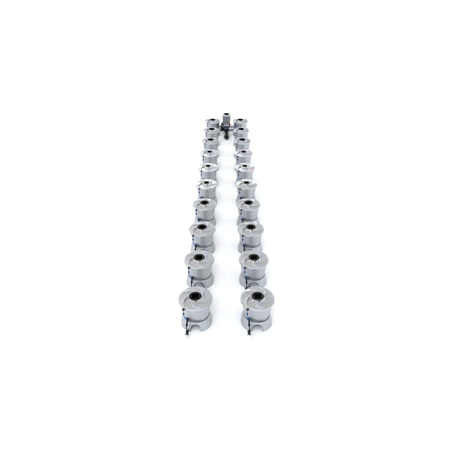 The ALIEN V-SYSTEM 20 Pot 2 Row Kit offers 4 layout options for header and pump placement to suit your grow area perfectly. Choose between an external setup or a compact design, depending on your space requirements. With easy configuration and advanced features, this recirculating deep water culture system ensures you can grow 20 plants to perfection!