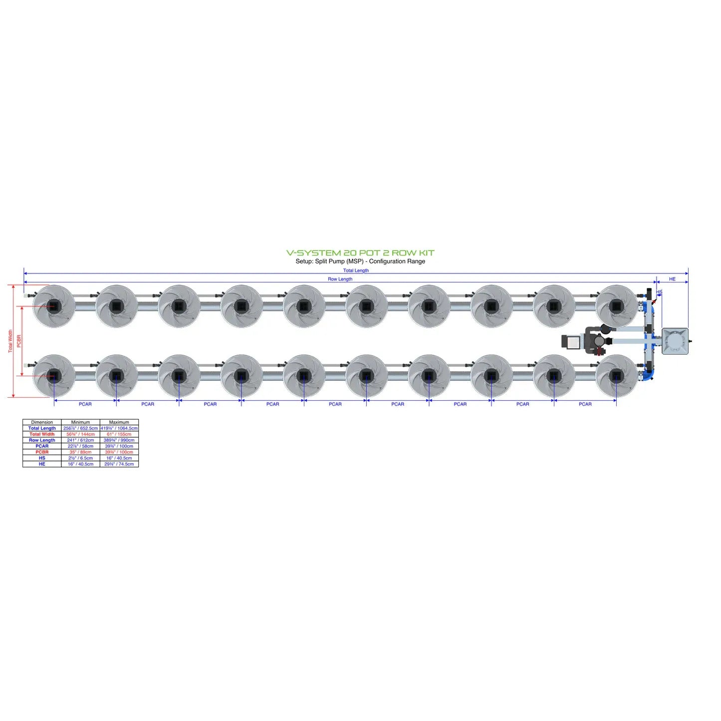 Alien Hydroponics V-SYSTEM 20 Pot 2 Row Kit