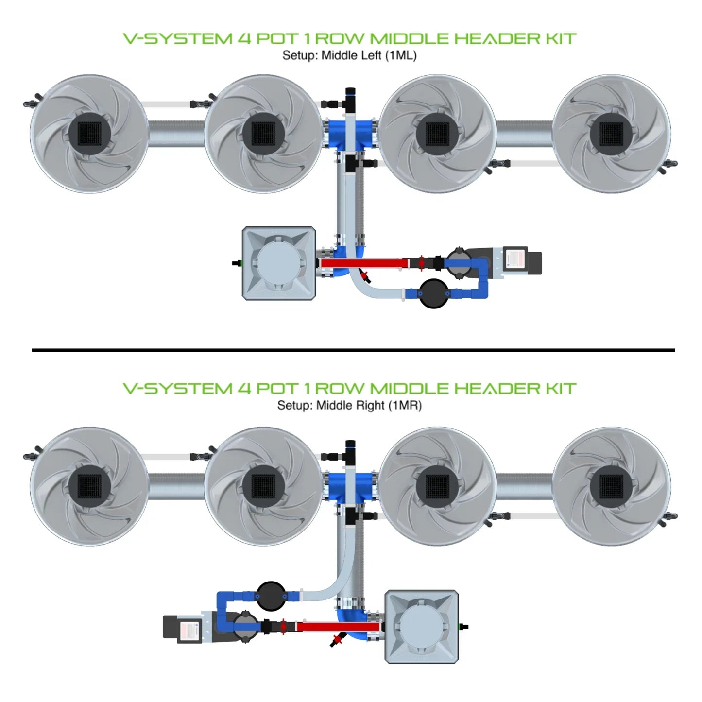 V-SYSTEM 4 Pot 1 Row Middle Header