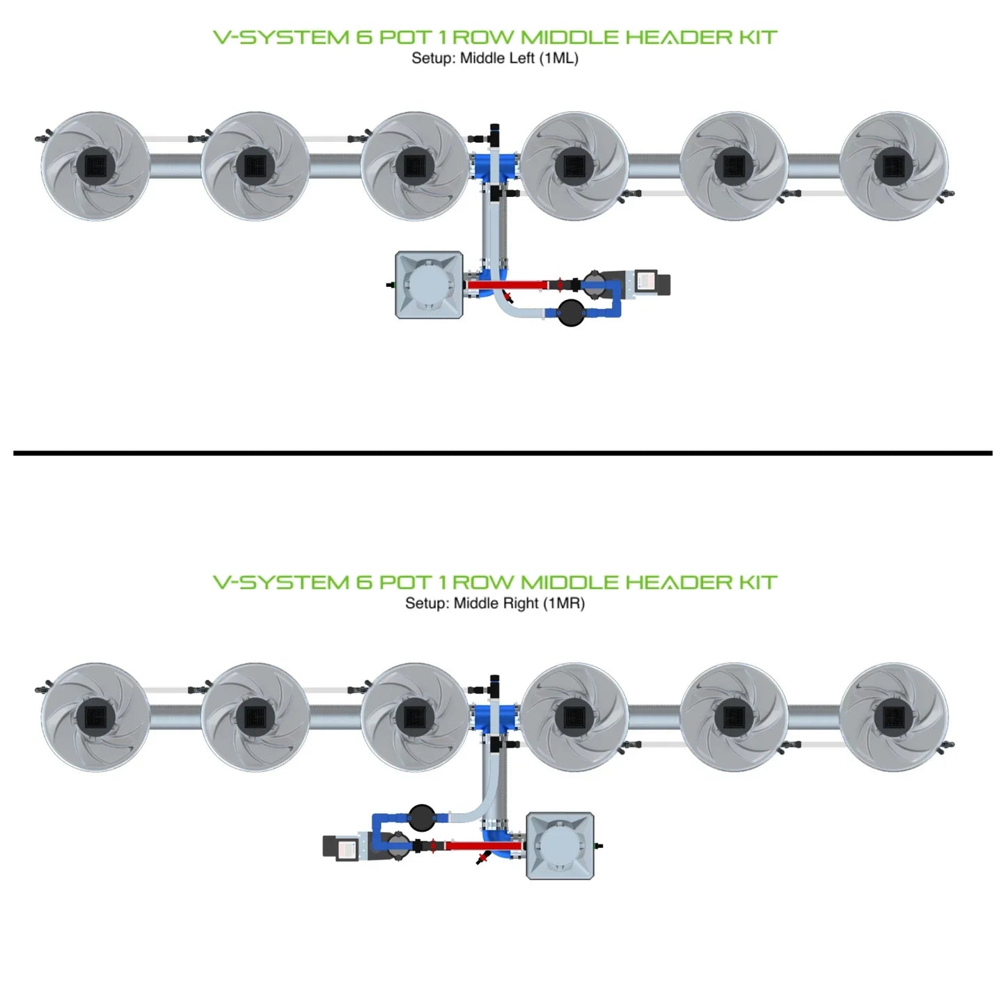 V-SYSTEM 6 Pot 1 Row Middle Header