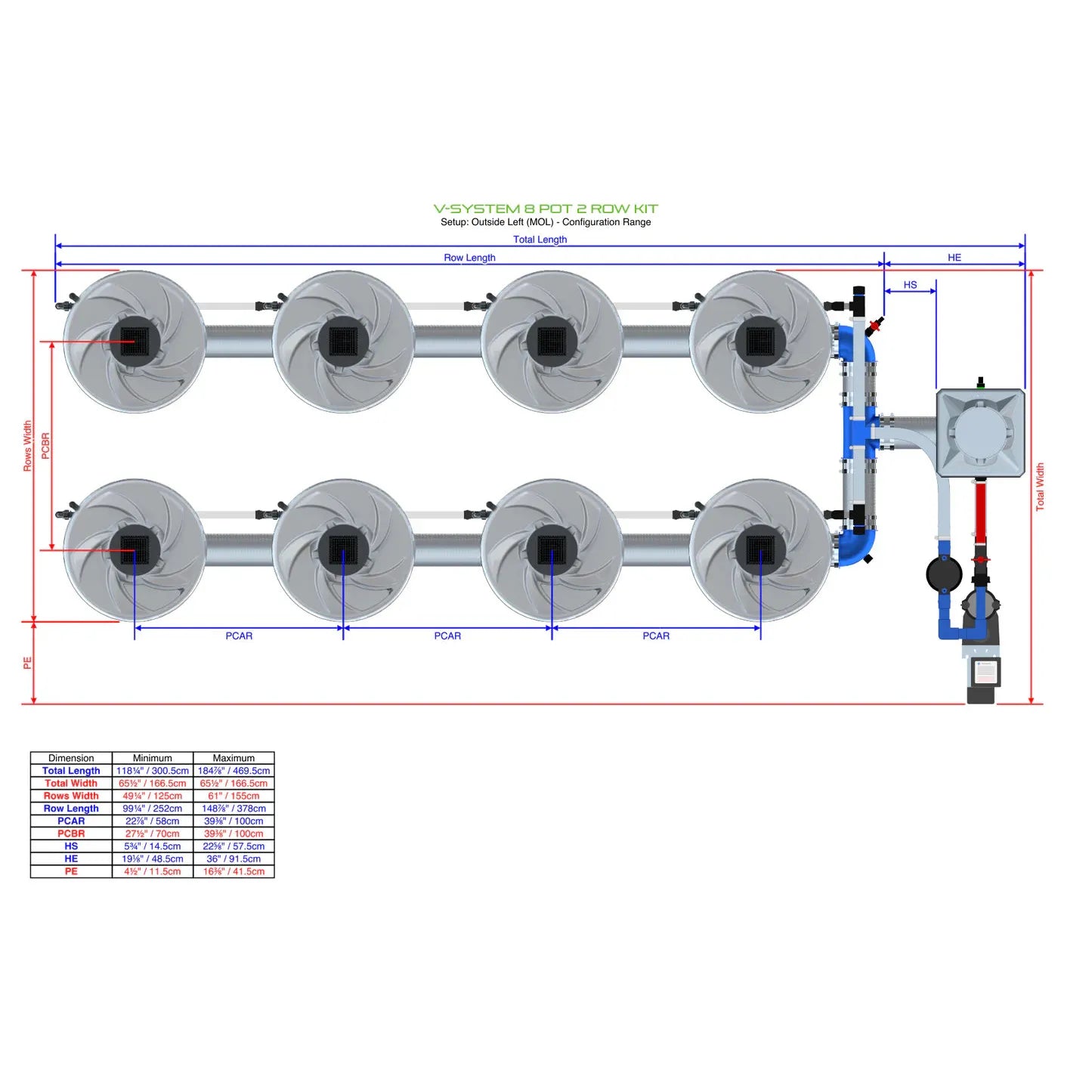Alien Hydroponics V-SYSTEM 8 Pot 2 Row Kit