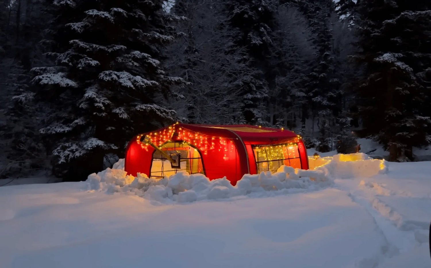 Whether you're setting up camp in snow-covered forests or open landscapes, the Air Capsule ensures a cozy and weather-resistant shelter. Its panoramic windows and transparent roof bring in natural light during the day and offer a warm, inviting ambiance at night.