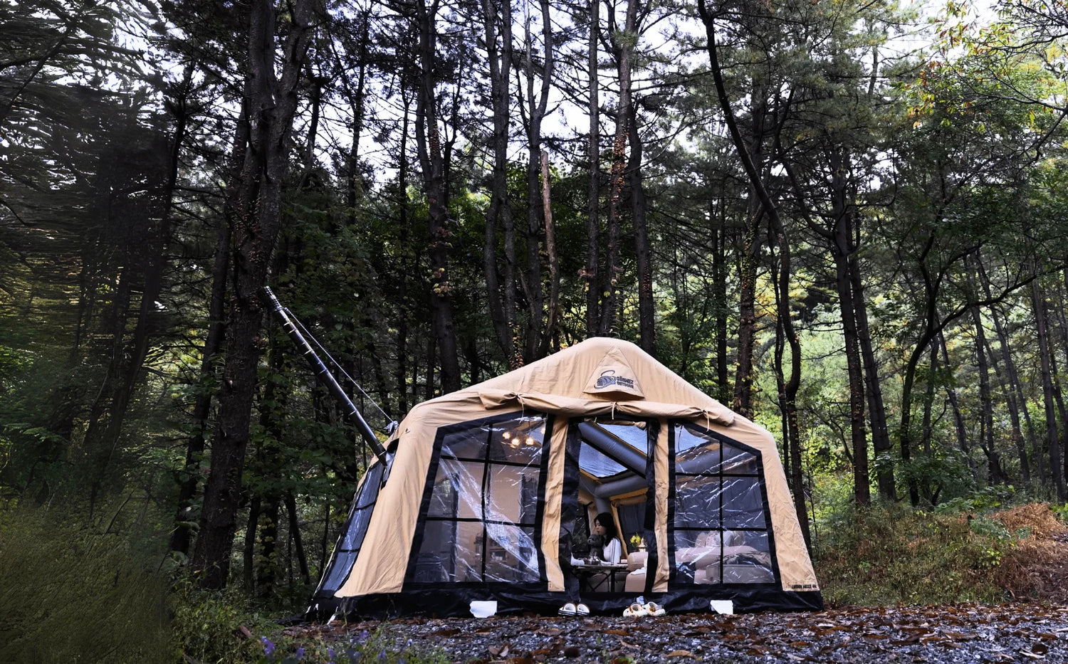The LONDON MAXIA 480 is more than just a tent—it's an expansive, luxurious, and all-weather shelter designed for the ultimate glamping experience. Whether you're planning a family adventure or an extended getaway, this patented inflatable tent comfortably accommodates up to 12 people.