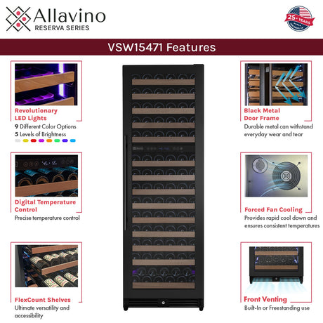 Allavino Reserva Series 326‑Bottle 71″ Tall Dual Zone Black Metal Side‑by‑Side Wine Refrigerator