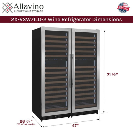 Allavino Reserva Series 326 Bottle 71″ Tall Dual Zone Stainless Steel Side‑by‑Side Wine Refrigerator