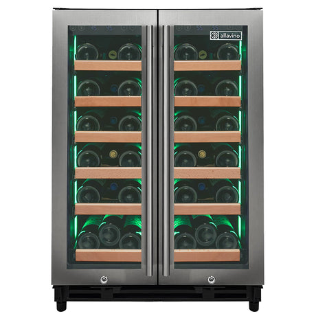 Allavino 24″ Wide FlexCount II Tru‑Vino 36‑Bottle Dual Zone Stainless Steel Wine Refrigerator