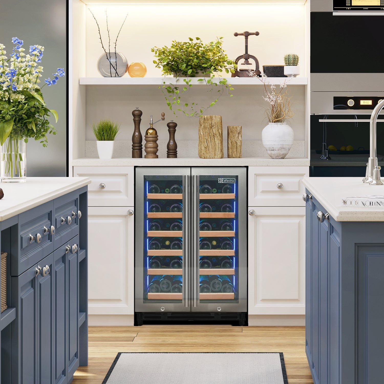 Allavino 24″ Wide FlexCount II Tru‑Vino 36‑Bottle Dual Zone Stainless Steel Wine Refrigerator