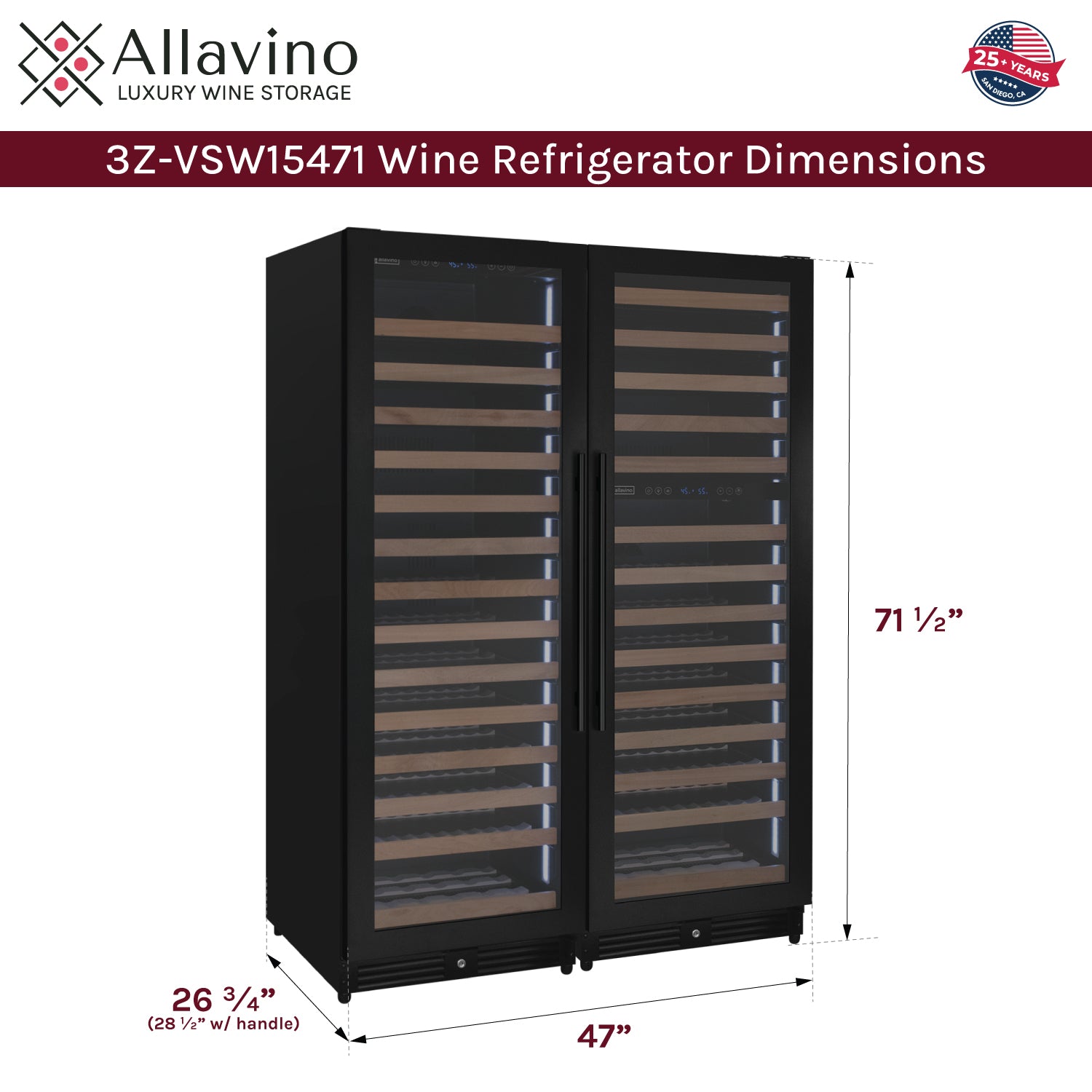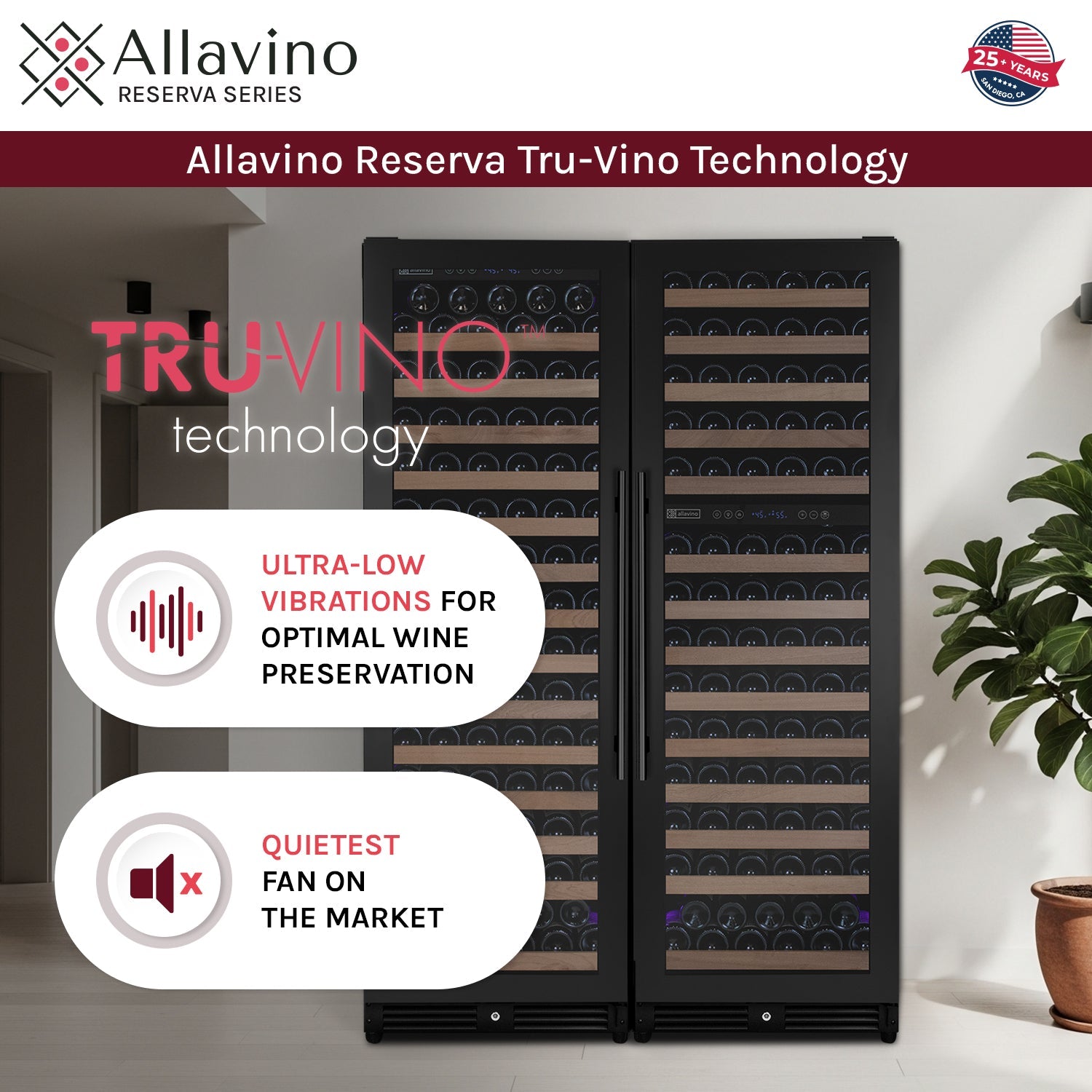 Allavino Reserva Series 317-Bottle Three Zone Tall Side-by-Side Wine Refrigerator with Black Metal Doors
