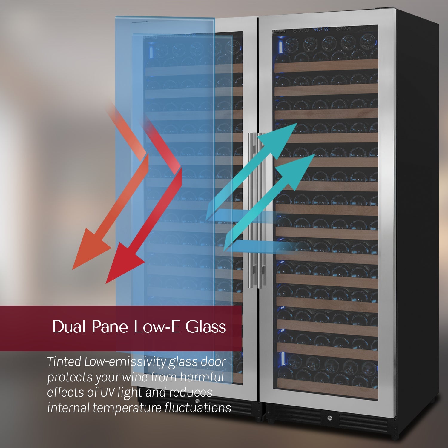 This adaptable wine refrigerator is designed for both built‑in and freestanding installations, thanks to its front‑venting system and finished sides. Each French door features UV‑protective glass and a locking mechanism for added security, giving you confidence and peace of mind when storing valuable bottles. Whether you’re hosting a tasting or protecting your most prized vintages, the Allavino Reserva Series offers performance, style, and capacity that will elevate your wine storage experience.