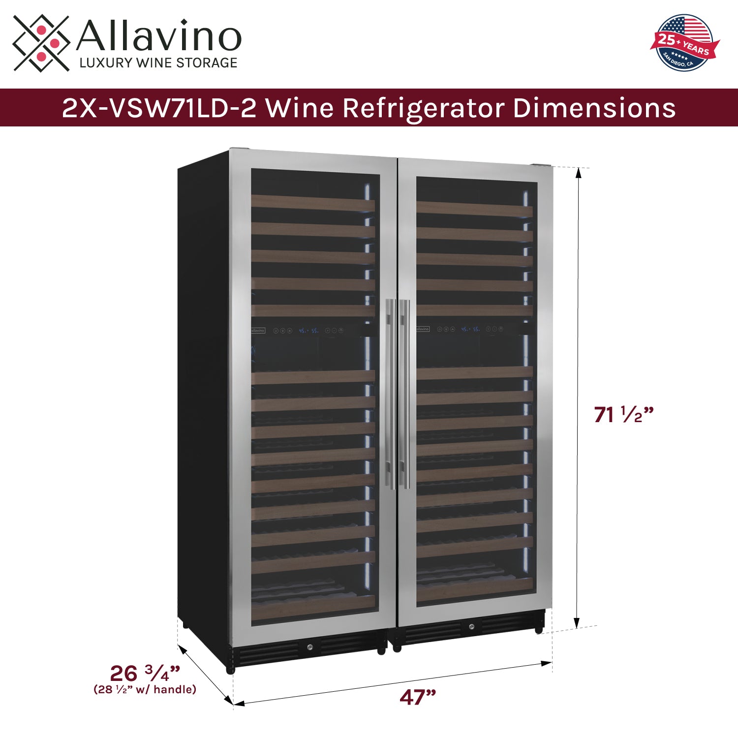 Allavino Reserva Series 344-Bottle 71″ Tall Four Zone Built-In Side-by-Side Wine Refrigerator with Stainless Steel Doors