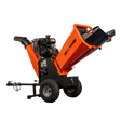 Designed with mobility and convenience in mind, this unit features rugged tires and a removable tow bar for easier transport across work areas. Additional functional details such as swing-open chutes and onboard storage enhance usability and maintenance access, making this chipper a reliable solution for both residential and light commercial applications.