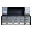 Chery Industrial 10ft Workbench Cabinet (30 Drawers, 2 Cabinets & 1 Pegboard) - Silver is backordered and will ship as soon as it is back in stock.