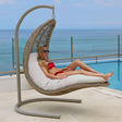 The Drone Hanging Chair offers a serene retreat with its enveloping shape and smooth, ergonomic curves. Wrapped in handwoven synthetic fiber with a stylish Kubu Mushroom finish, it suspends effortlessly from a durable freestanding aluminum frame. Paired with a plush, weather-resistant Sunbrella cushion, this piece brings elevated comfort and sophistication to patios, garden nooks, or poolside escapes.
